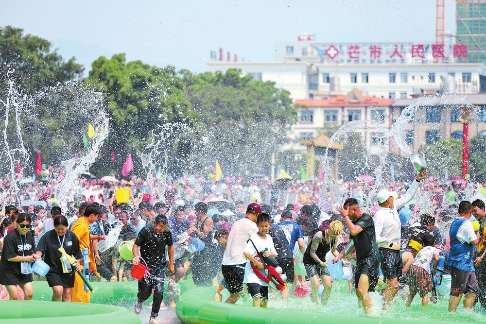 4月12日,以“共飲一江水 胞波情誼長(zhǎng)”為主題的2023年中緬邊民大聯(lián)歡暨芒市地區(qū)潑水狂歡節(jié)系列活動(dòng)在德宏傣族景頗族自治州芒市開幕。