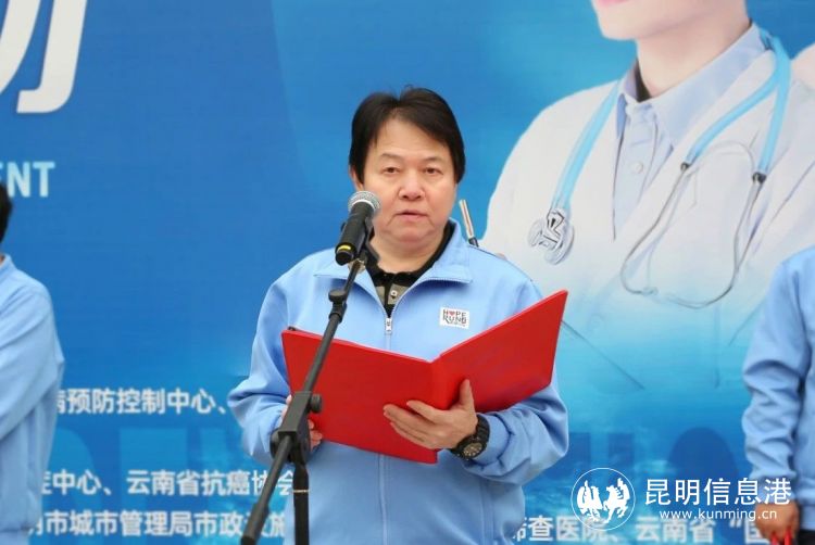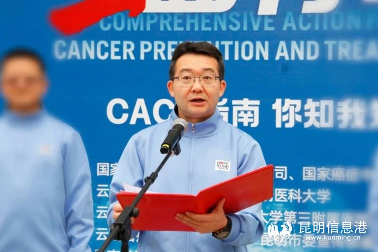 啟動儀式上,國家癌癥中心主任、中國醫(yī)學(xué)科學(xué)院腫瘤醫(yī)院院長赫捷院士在線上出席活動。昆明醫(yī)科大學(xué)黨委常委、副校長吳紅明,云南省衛(wèi)生健康委疾控局二級調(diào)研員唐明波,云南省抗癌協(xié)會理事長譚晶,云南省癌癥中心主任黃云超,云南省疾控中心慢病所楊滄江,云南省腫瘤醫(yī)院 昆明醫(yī)科大學(xué)第三附屬醫(yī)院黨委委員、副院長(主持行政工作)李高峰,黨委副書記李娟,黨委委員、紀委書記徐源,黨委委員、副院長李文輝,副院長聶建云以及來自醫(yī)院各行政職能部門、臨床醫(yī)技科室醫(yī)務(wù)人員和云南省癌癥康復(fù)會的癌癥康復(fù)患者參加線下義跑。聶建云副院長主持啟動儀式。