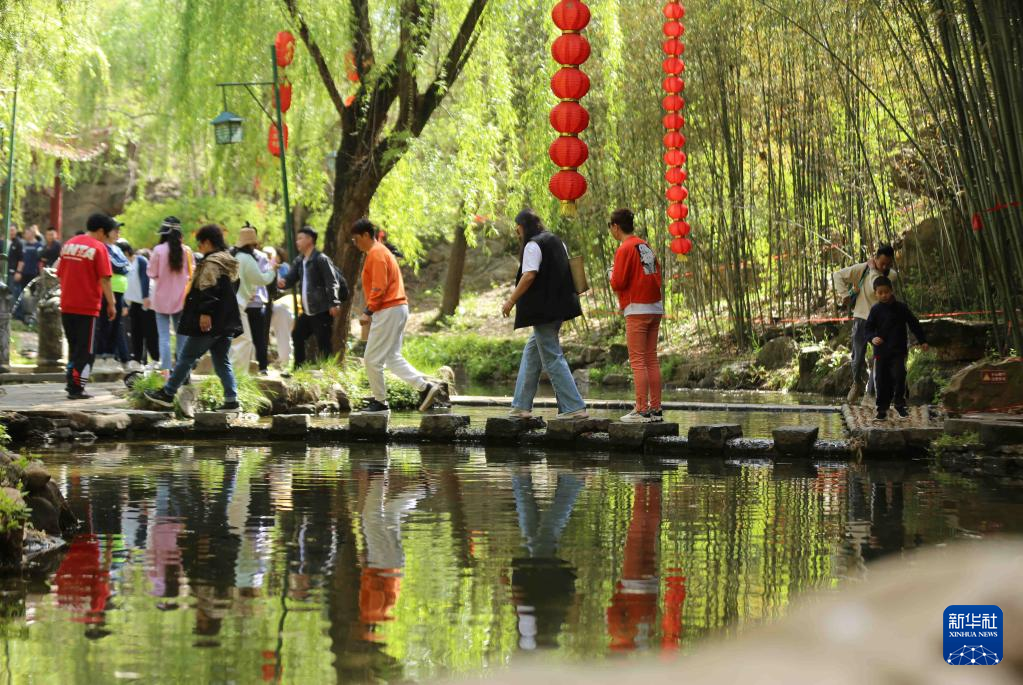 4月16日,游客在沂南縣銅井鎮(zhèn)竹泉村游玩。新華社發(fā)(王彥冰 攝)
