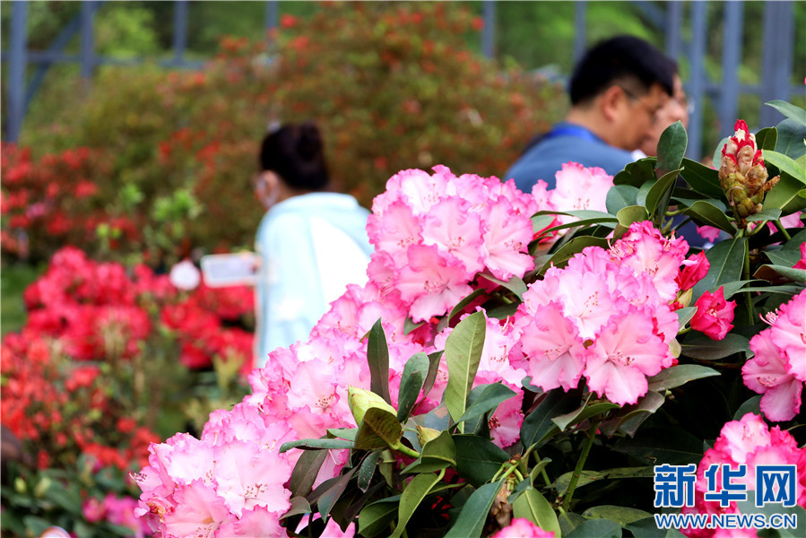 游客在井岡山“映山紅霞”杜鵑花培育基地賞花拍照。新華網(wǎng) 王曉震 攝