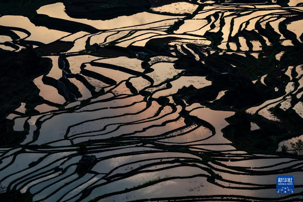 這是在云南省紅河哈尼族彝族自治州元陽縣拍攝的哈尼梯田美景(2023年3月16日攝)。新華社記者 江文耀 攝