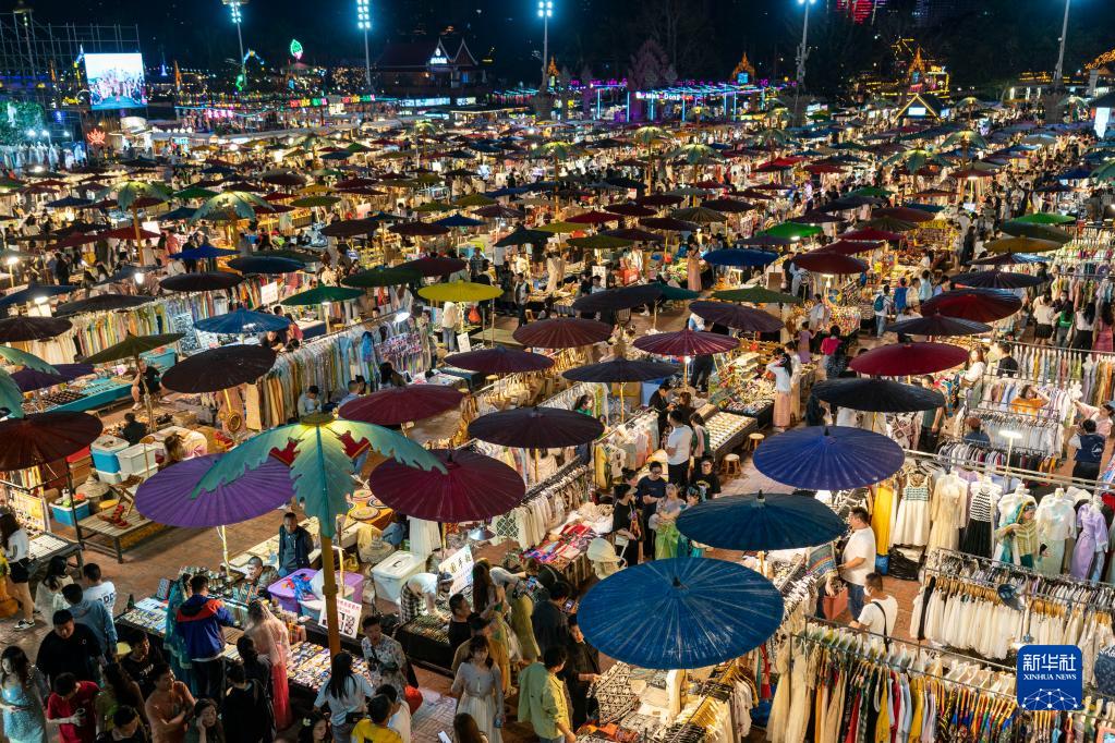 這是云南省西雙版納景洪市告莊西雙景星光夜市(2023年2月12日攝)。新華社記者 陳欣波 攝