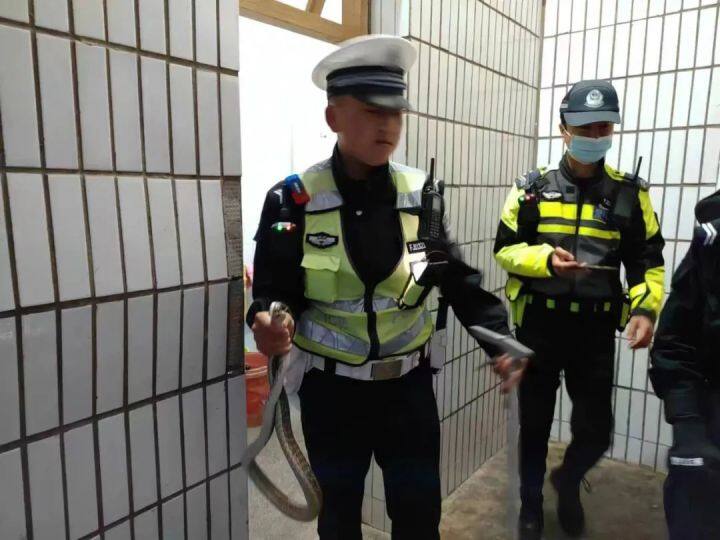 民警隨即趕往這名群眾家中。到達(dá)求助人家中后,民警在衛(wèi)生間中發(fā)現(xiàn)了這條一米多長(zhǎng)的蛇。 通過(guò)觀察,確認(rèn)是菜花蛇無(wú)毒后,民警徒手將其抓獲。隨后,民警將蛇交與派出所民警保存在密閉的裝置里帶走,求助居民連連表示的感謝。
