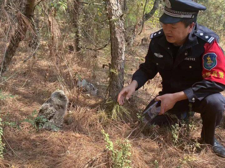 經(jīng)鑒定,這只幼鳥(niǎo)為領(lǐng)角鸮,是國(guó)家二級(jí)保護(hù)動(dòng)物,屬貓頭鷹的一種。民警在檢查小貓頭鷹沒(méi)有外傷后,民警驅(qū)車(chē)將小貓頭鷹放回山林。