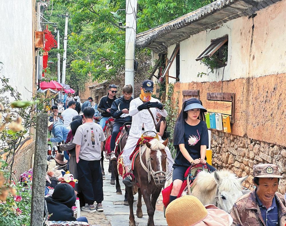 隨著電視連續(xù)劇《去有風(fēng)的地方》熱播,在電視劇取景地之一的大理市下關(guān)鎮(zhèn)鳳陽(yáng)邑村,昔日的茶馬古道重現(xiàn)了當(dāng)年的繁華。過(guò)去馱物資的馬背如今馱起了時(shí)尚達(dá)人,每天近3000名游客穿梭在村子里,在民宿里觀賞夯土墻上盛開(kāi)的鮮花,走進(jìn)農(nóng)家院落品味民謠與下午茶帶來(lái)的休閑時(shí)光,用相機(jī)和手機(jī)拍下照片,記錄在大理的美好生活。