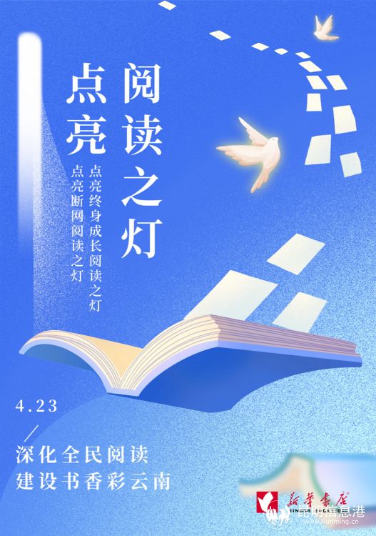 4月23日當天,昆明新華書店的26個連鎖網(wǎng)點將為讀者延長營業(yè)時間兩小時以上,吳井路書店將于4月23日營業(yè)24小時,向全市讀者發(fā)出全民閱讀倡議,以“點亮云嶺閱讀之燈”、“點亮終身成長之燈”、“點亮斷網(wǎng)閱讀之燈”、“點亮銀鈴閱讀之燈”等為城市空間閱讀主線,在夜晚為不同群體的讀者亮起閱讀之燈,并以視頻的形式邀請讀者參與到活動中。