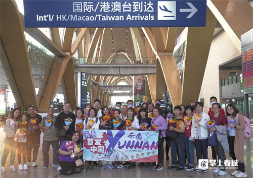 國(guó)外游客紛至沓來(lái),入境旅游團(tuán)一波接一波!4月22日17時(shí),搭乘馬來(lái)西亞亞洲航空公司AK101航班的31位團(tuán)隊(duì)游客,從吉隆坡飛抵昆明長(zhǎng)水國(guó)際機(jī)場(chǎng)。該團(tuán)是馬來(lái)西亞品牌旅游商蘋果旅游2023年度首個(gè)赴中國(guó)的旅游團(tuán)隊(duì)。為了歡迎遠(yuǎn)道而來(lái)的朋友,蘋果旅游準(zhǔn)備了具有云南特色的歡迎儀式,精心準(zhǔn)備的花束讓剛下飛機(jī)的旅客感受到世界春城花都的浪漫與好客。