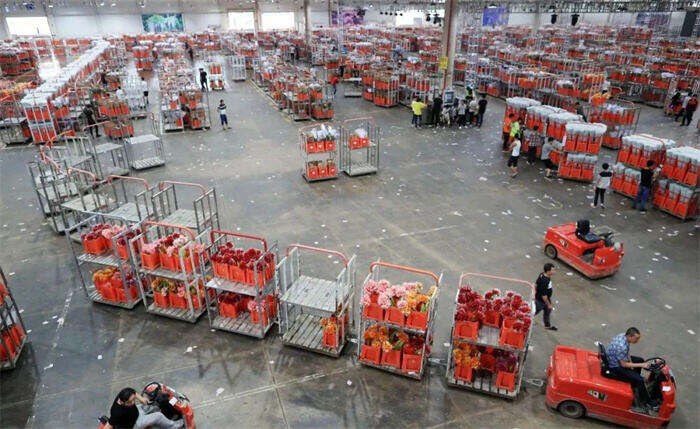 在墩子花卉市場(chǎng),鮮花都以“車(chē)”這個(gè)數(shù)量單位進(jìn)行交易。批發(fā)商根據(jù)玫瑰的品質(zhì)、色澤度、有無(wú)病蟲(chóng)害等決定是否購(gòu)買(mǎi)。交易完成后,再通過(guò)冷鏈物流將鮮切花迅速發(fā)往全國(guó)各地。春節(jié)以來(lái),墩子花卉市場(chǎng)銷(xiāo)售量持續(xù)上漲,在這里平均幾秒鐘就能完成一筆交易。
