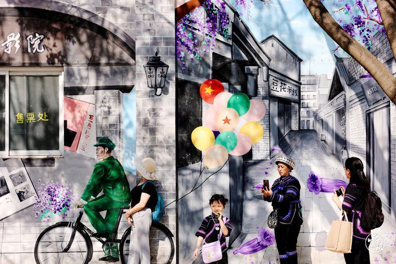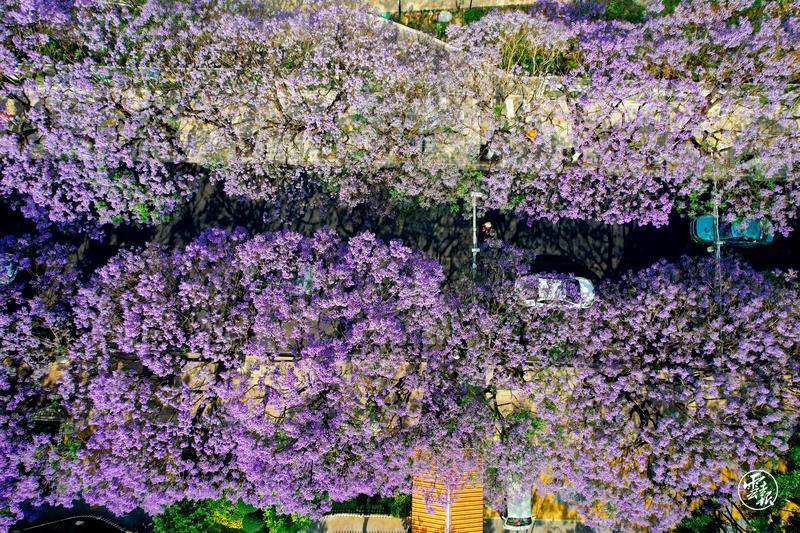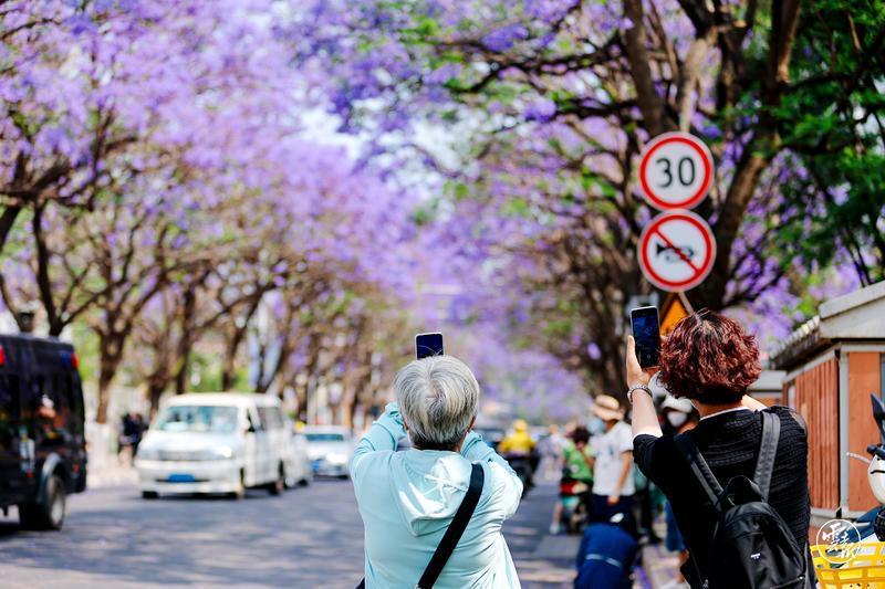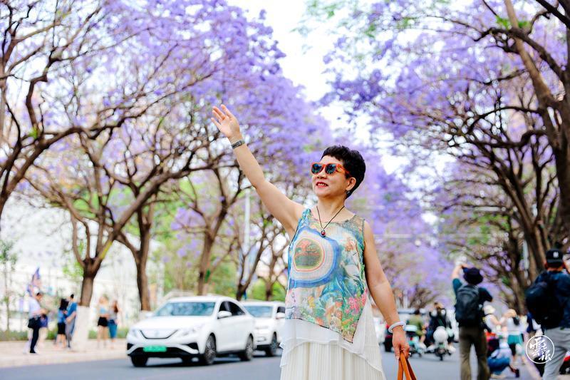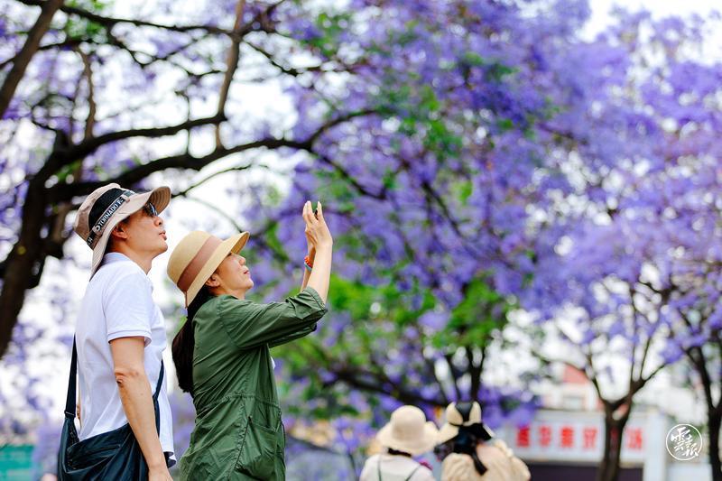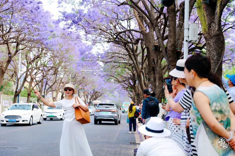 藍(lán)花楹盛開(kāi)的季節(jié),春城昆明處處涌動(dòng)著醉人的藍(lán)紫色花潮。4月23日,位于教場(chǎng)中路的藍(lán)花楹大道游人如織,花海映人潮,浪漫無(wú)比。