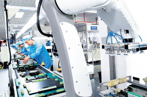 浪潮(云南)智能制造生產(chǎn)基地生產(chǎn)線。 記者楊艷輝攝