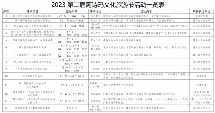 第二屆阿詩瑪文化旅游節(jié)活動一覽表