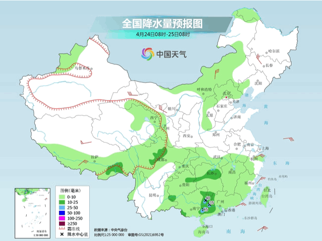今天(4月24日),我國南方大范圍降水持續(xù),部分地區(qū)雨勢依然較強,并可能伴有強對流天氣,明天降水范圍將有所縮小。