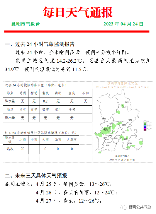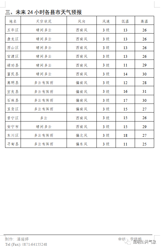 據(jù)昆明氣象臺預報