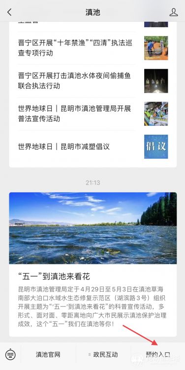 微信關(guān)注“滇池”公眾號,點(diǎn)擊“滇池”公眾號菜單欄“預(yù)約入口”進(jìn)入報名頁