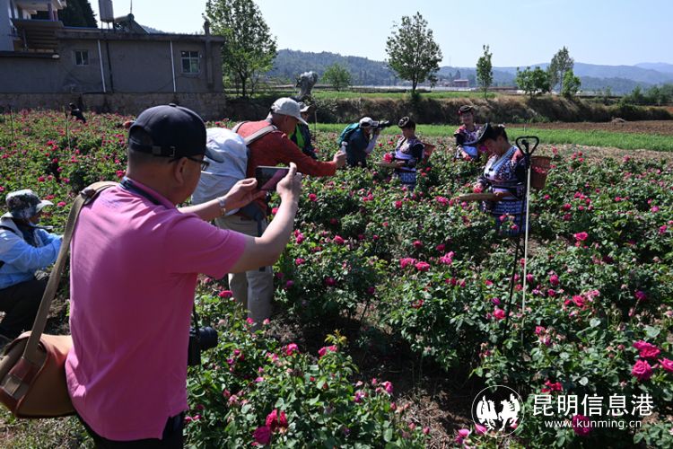 昆明信息港訊 記者王素晶 2023年三迤玫瑰老鹵酒文化節(jié)暨采花制鹵啟動(dòng)儀式于4月25日在酒業(yè)專屬玫瑰花種植基地隆重舉行。彩龍社區(qū)優(yōu)質(zhì)創(chuàng)作者、酒業(yè)人士、攝影愛好者、云南省餐飲業(yè)人士共計(jì)百余人參與了此次活動(dòng),共同探尋“昆明記憶”。