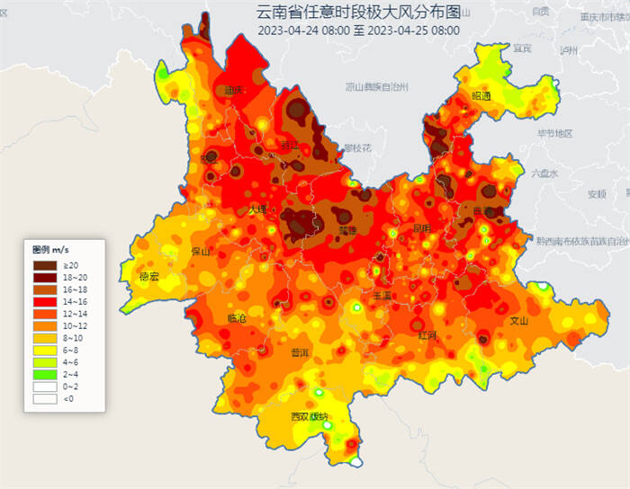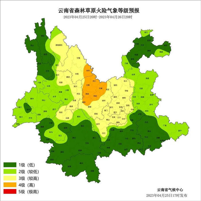 預計,麗江東部、楚雄北部4級,迪慶東部、麗江中部和西部、大理北部和東部、臨滄北部、楚雄南部和中部、昆明、玉溪3級,其它地區(qū)1~2級。