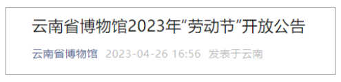 2023年“勞動(dòng)節(jié)”假期將至,為豐富廣大人民群眾的精神文化生活,更好地滿足觀眾參觀展覽的需要,現(xiàn)將云南省博物館“勞動(dòng)節(jié)”期間開(kāi)放情況公告如下: