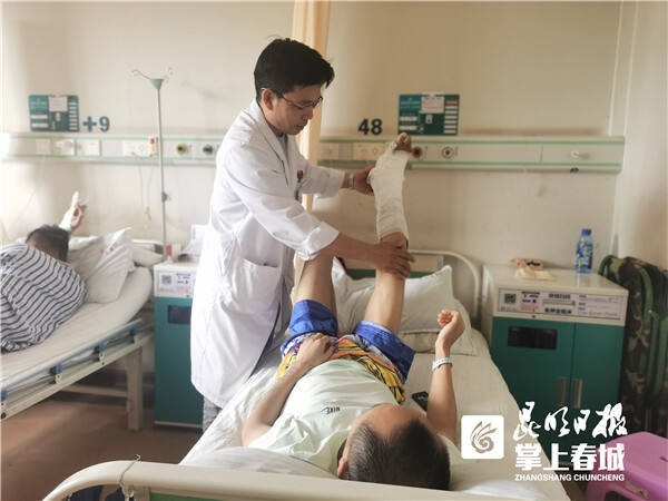 “經(jīng)過檢查,患者腰椎爆裂性骨折、右腳跟骨粉碎性骨折,手術(shù)解決了骨折的問題,但是腳上的傷口是開放傷,出現(xiàn)了感染,需要進行皮瓣修復(fù)?!痹颇现械鹿强漆t(yī)院修復(fù)重建顯微外科中心醫(yī)生蘇國柱介紹,目前已經(jīng)為王先生處理了傷口,也用了藥,4月27日會進行清創(chuàng)手術(shù),手術(shù)一周后,還需要再做皮瓣修復(fù)手術(shù)。