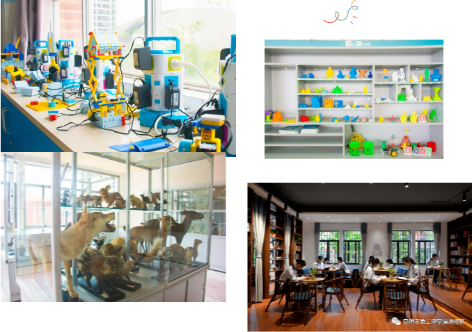 學(xué)校配備高標(biāo)準(zhǔn)理化生實驗室、音樂教室、美術(shù)教室、黨建活動室、活動禮堂、標(biāo)準(zhǔn)機房、形體室、室內(nèi)籃球館、典雅寧靜的圖書館U品悅讀棧,還有“昆明市機器人教育實驗室”,學(xué)生心理成長指導(dǎo)中心“馨苑”,《中學(xué)數(shù)學(xué)建模的探究與應(yīng)用》青少年科技創(chuàng)新實驗室、《天文觀測與氣象觀測》創(chuàng)新實驗室、《3D打印》項目等各級創(chuàng)新實驗室,并于2022年4月與昆明青少年活動中心共建天文方艙,帶你遨游知識海洋,感受科學(xué)盛宴。為學(xué)校師生教學(xué)和學(xué)習(xí)帶來了更完備的場地和設(shè)備,拓展了更加豐富的學(xué)習(xí)渠道。