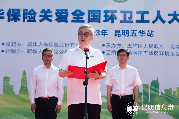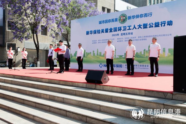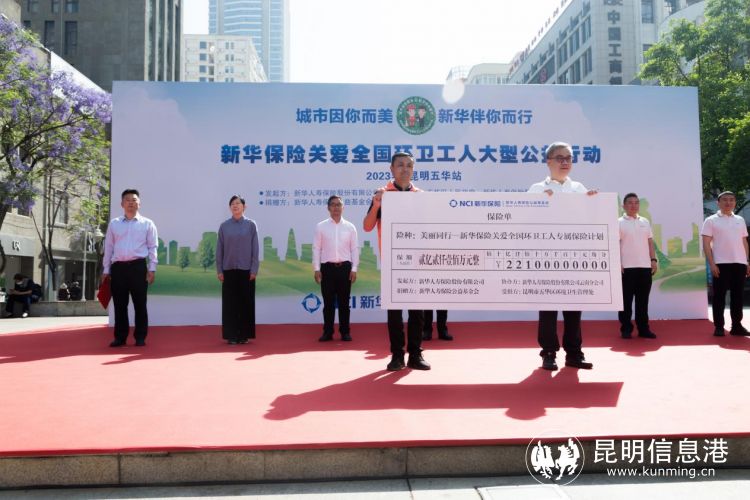昆明信息港訊 記者昝娟娟 “同新聚力,衛(wèi)愛出發(fā)”。4月25日上午,“城市因你而美·新華伴你而行——新華保險關(guān)愛全國環(huán)衛(wèi)工人大型公益行動”昆明五華站捐贈儀式在昆明南屏步行街中心廣場舉行。新華保險向昆明市五華區(qū)2200余名環(huán)衛(wèi)工人,捐贈每人10萬元保額的人身意外傷害保險,捐贈總保額超2.2億元。