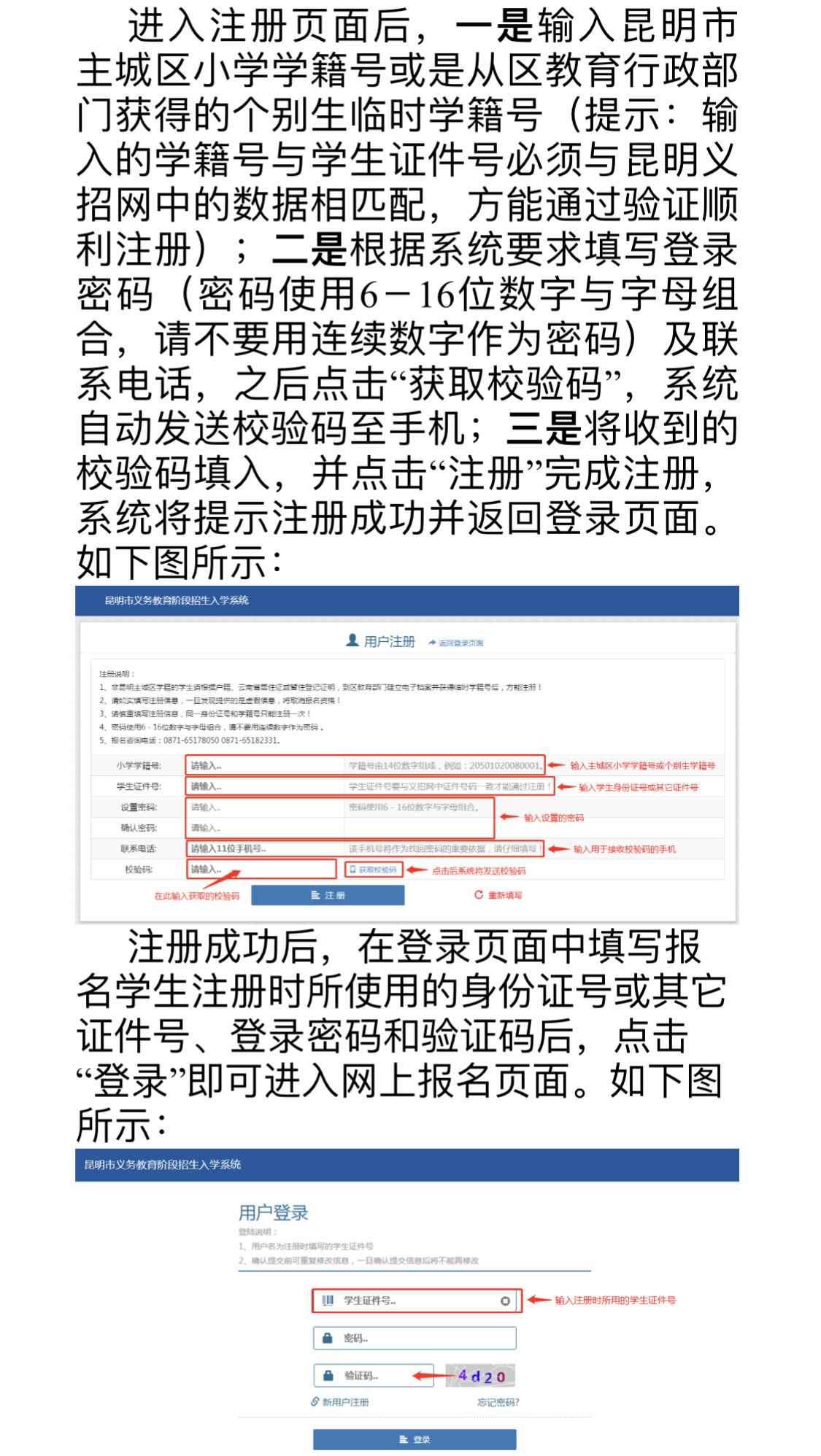 非昆明市主城區(qū)學(xué)籍的六年級(jí)學(xué)生,按相應(yīng)的區(qū)教育體育局要求,建立個(gè)別生電子檔案后,再登錄“昆明義招網(wǎng)”報(bào)名。
