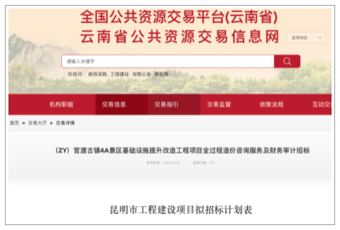 4月25日,昆明市官渡區(qū)國有資產(chǎn)投資經(jīng)營有限公司在云南省公共資源交易網(wǎng)上發(fā)布了“官渡古鎮(zhèn)4A景區(qū)基礎(chǔ)設(shè)施提升改造工程項(xiàng)目全過程造價咨詢服務(wù)及財務(wù)審計招標(biāo)公告”,此舉標(biāo)志著官渡古鎮(zhèn)景區(qū)基礎(chǔ)設(shè)施提升改造即將進(jìn)入開工階段。