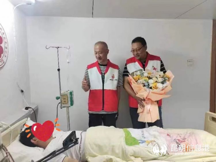 捐獻當天,單位領導還來探望和慰問了小段,而楚雄州紅十字會的工作人員也專程來昆探望小段,為他的大愛行為點贊。