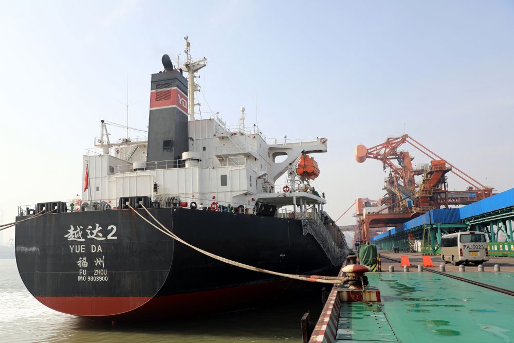 船舶??吭趪茳S驊港四期碼頭進(jìn)行裝船作業(yè)(2023年3月9日攝)。新華社記者 駱學(xué)峰攝