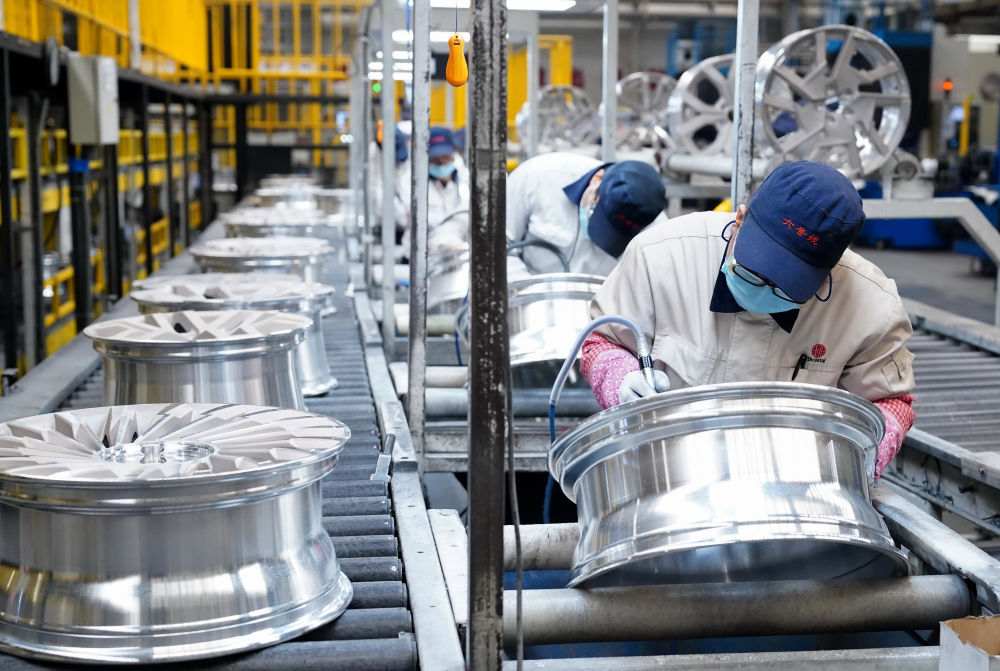 工人在秦皇島經(jīng)濟(jì)技術(shù)開發(fā)區(qū)一家車輪企業(yè)的生產(chǎn)車間工作(2023年2月12日攝)。新華社記者 楊世堯攝