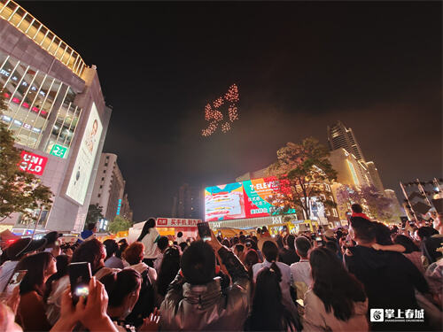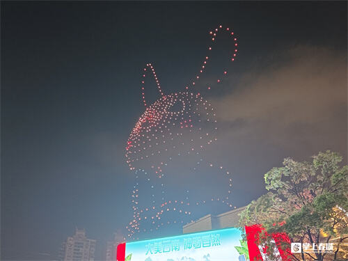夜幕降臨,無人機光影秀緩緩啟幕。