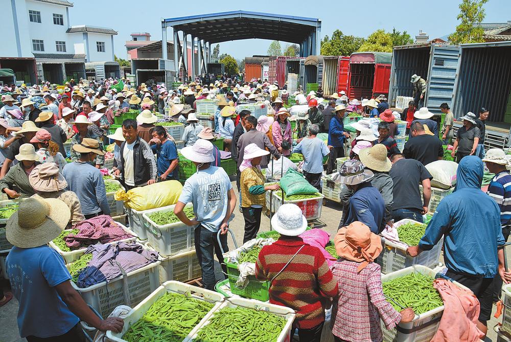 近日,晉寧區(qū)六街鎮(zhèn)新鮮采收的豌豆集中上市,交易紅火。