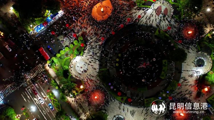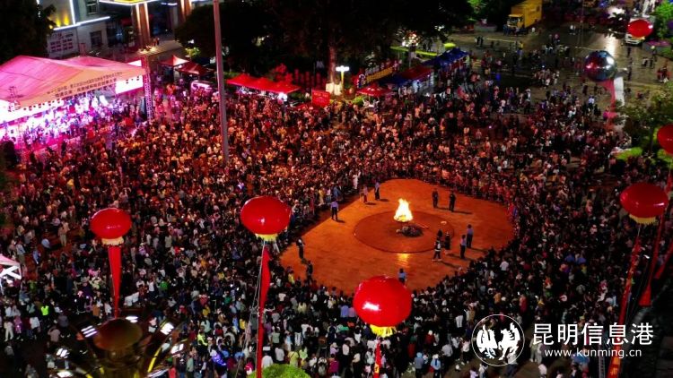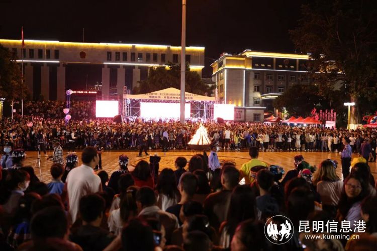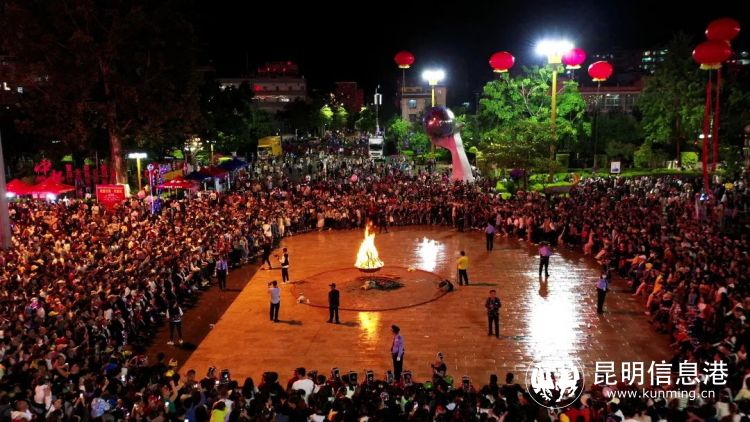 夜幕下的墨江太陽廣場,華燈璀璨、人頭攢動、熱鬧非凡,伴隨著哈尼曲調(diào)的響起,身著節(jié)日的盛裝的哈尼族和各族同胞圍繞在篝火旁,在《阿米車》《三跺腳》《龍縱舞》《扭鼓舞》《再唱阿米車》《哈尼歡歌》……一曲又一曲民族歌曲中,跳著一支支傳統(tǒng)舞蹈,好似循轉(zhuǎn)的太陽,萬人共舞的場面壯觀而震撼。