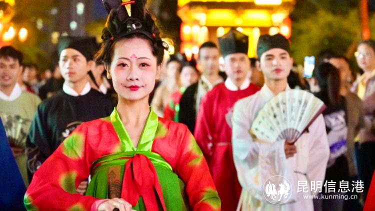 越羅衫袂迎春風(fēng),玉刻麒麟腰帶紅。4月30日20:00,“穿越紫陶千年——建水漢服嘉年華”活動在紫陶里上演,舞蹈《唐宮夜宴》《逍遙游》《敦煌婆娑》《古風(fēng)新韻》《陶秀》輪番上演,燈火闌珊下的紫陶里,呈現(xiàn)一派古典繁華、大氣的盛世景象。身著各式漢服的市民、演員隨處可見,成為紫陶里街頭一道亮麗的風(fēng)景。