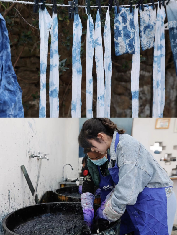 游客在大理市藍續(xù)喜洲田園店體驗扎染。新華社記者 曾維 攝