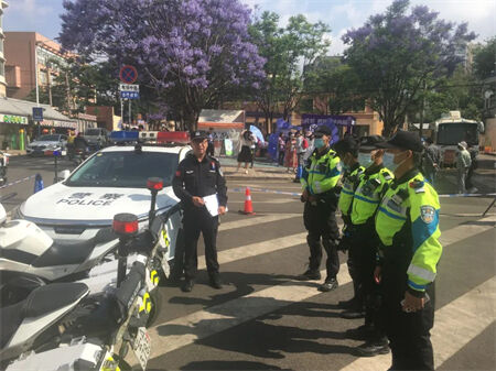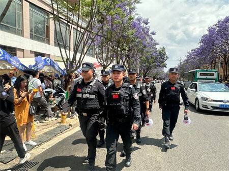 到轄區(qū)藍花楹打卡景點開展安全值守、巡邏防控工作。