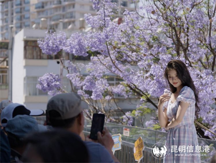 時下,昆明街頭巷尾的藍花楹已進入盛花期,一抹抹“夏日限定”將昆明變成了藍紫色的花海。彩云里藝術商業(yè)中心空中大露臺及鐵皮巷沿途的藍花楹也吸引了現(xiàn)場參與者們的關注。在昆明攝影家協(xié)會藝術人像攝影委員會主任岳曉明的帶領下,首期City walk春城漫步計劃同步于當天啟幕。近百名攝影愛好者一起漫步彩云里、鐵皮巷,用鏡頭記錄城市美景,在花海間感受城市脈絡。在岳曉明的指導下大家學習了人像攝影技巧,不絕于耳的咔嚓聲,也將現(xiàn)場花海與人交相輝映的美景定格于相機之中。