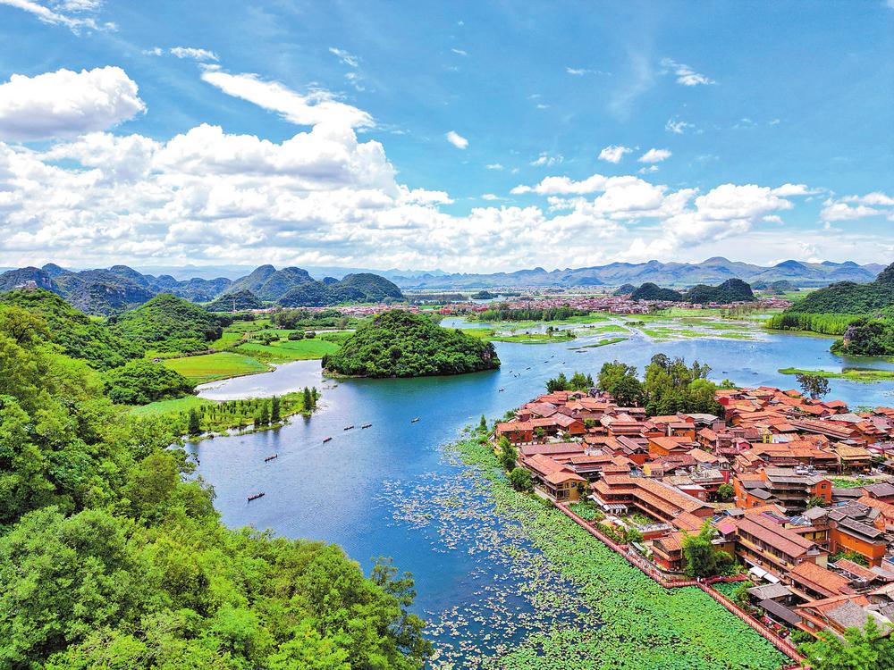 丘北縣普者黑湖地處滇黔桂喀斯特地貌核心地帶,有著罕見的大面積溶蝕湖群水域。多年來,當?shù)刿`行“兩山論”,推進普者黑湖治理保護,把風(fēng)景變成產(chǎn)業(yè)、將美麗化為生產(chǎn)力,“喀斯特綠洲”成為一張亮麗的旅游名片。今年“五一”假期,普者黑景區(qū)接待游客比上年同期增長519.3%。(云南日報 記者 張文峰 通訊員 吳哲芳 攝)
