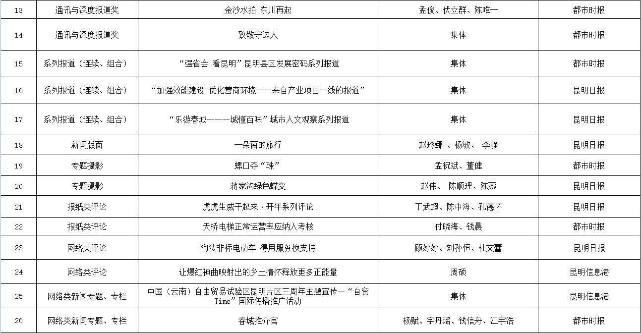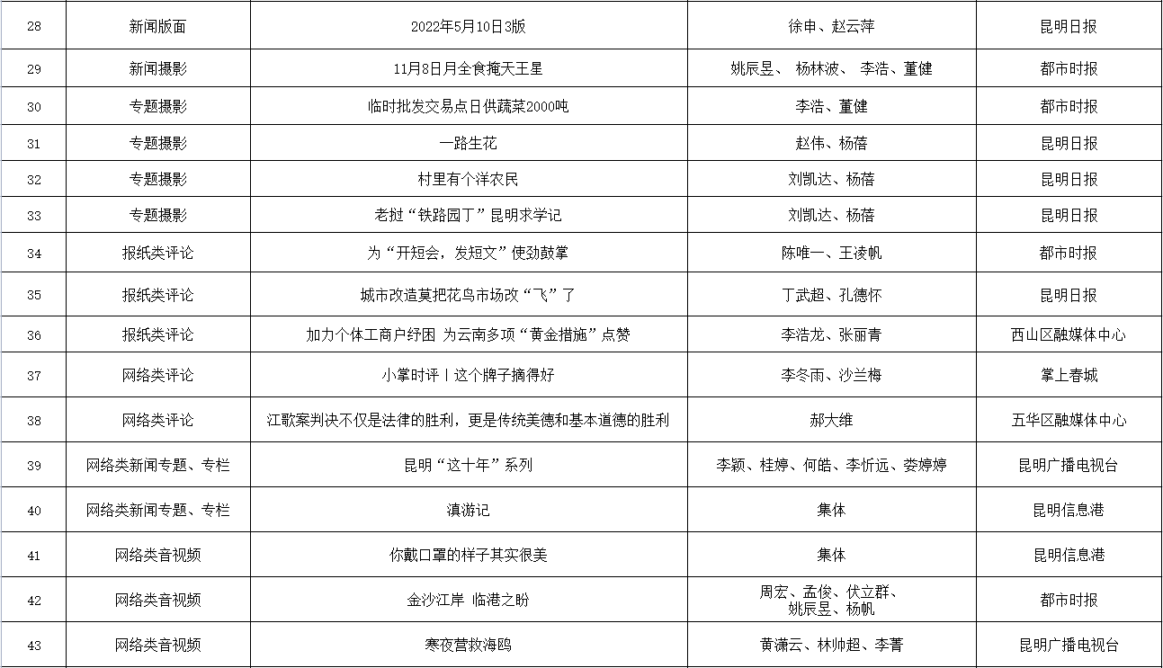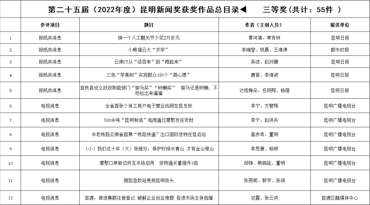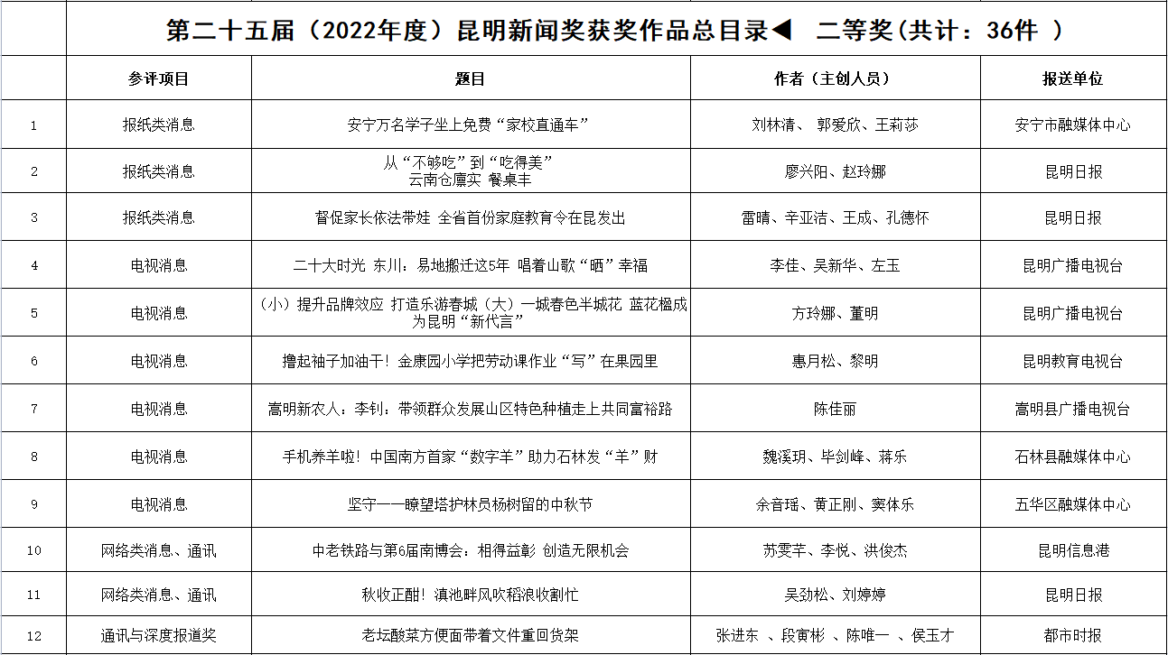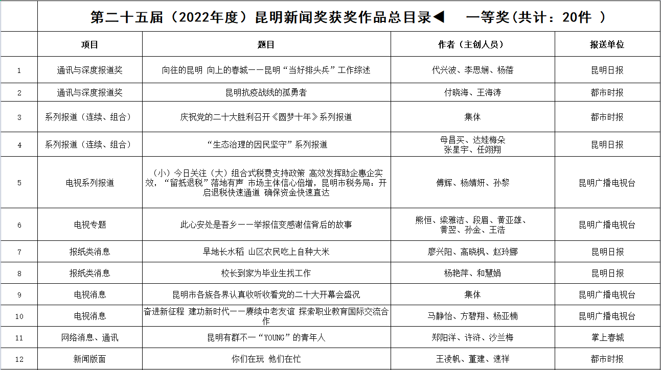 第二十五屆(2022年度)昆明新聞獎(jiǎng)獲獎(jiǎng)作品目錄