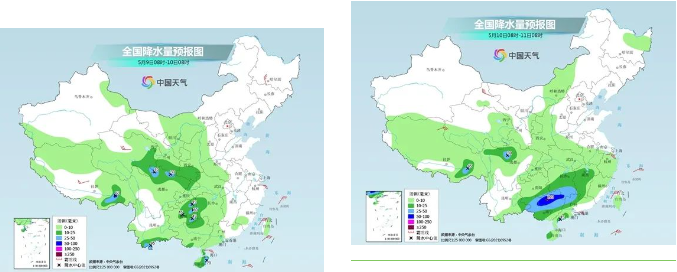 今明天(5月9日至10日),我國降水將自西向東發(fā)展,從西北地區(qū)一直到江南、華南一帶降雨增多增強,其中廣西等地部分地區(qū)有暴雨,局地大暴雨。