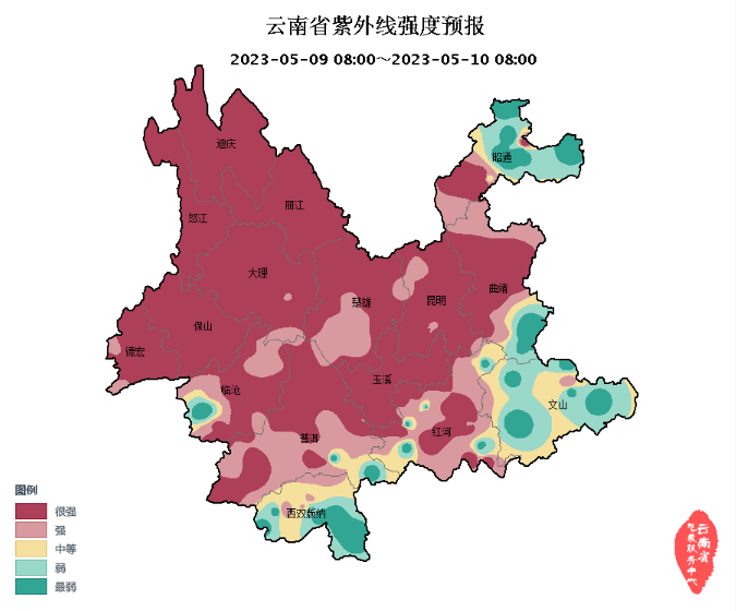 另外,今明兩天全省大部地區(qū)紫外線強度很強,朋友們外出時請做好防護,防曬霜、墨鏡、遮陽傘...都安排上,天氣燥熱,請多喝水及時補充水分。