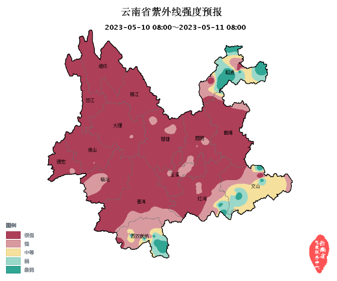 05月10日20時到05月11日20時:文山東部和南部陰有中雨局部大雨,昭通、曲靖、昆明、楚雄東部、玉溪、紅河、普洱南部、西雙版納、臨滄西部、德宏西部、怒江北部、迪慶西部多云間陰有陣雨局部中雨,其它地區(qū)多云間晴。