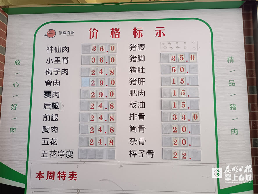 隨后,記者走訪篆新農(nóng)貿(mào)市場、蔡家村農(nóng)貿(mào)市場、沃爾瑪超市云山路店、昇菘超市經(jīng)典雙城店了解到,市場上除無公害豬、大豬、黑毛豬外,一般豬前腿肉、五花肉零售價格為23元/千克至26元/千克,豬后腿肉、排骨肉為24元/千克至29元/千克,肉價已是今年最低行情。