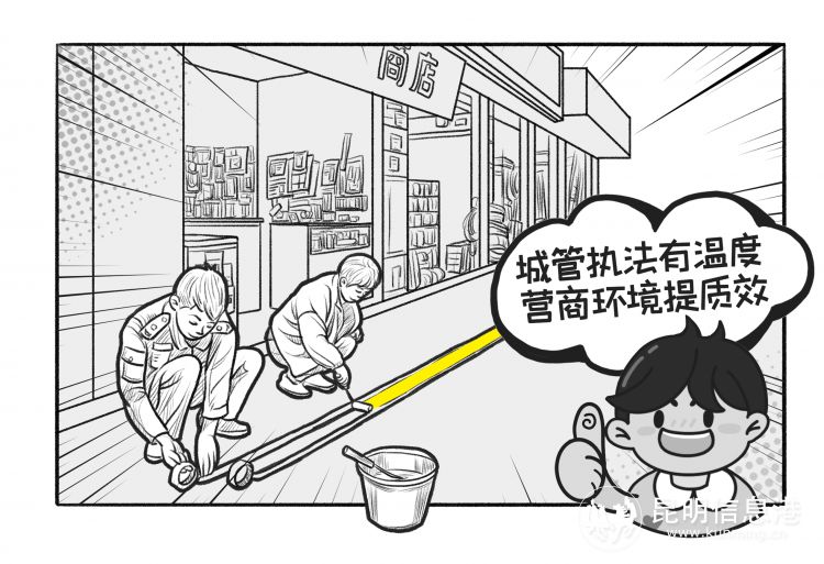 昆明晉寧城管在某道路商鋪前施劃“一米線”的視頻火了。黃線內(nèi),商家可以沿線展示商品;黃線外,群眾可以“自在”選購(gòu)商品。