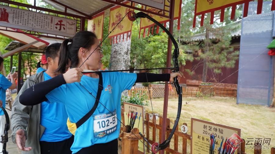 本次賽事有來自北京、上海、廣州等全國各地的戶外運(yùn)動愛好者,以及美國、巴基斯坦、塔吉克斯坦等國家和地區(qū)的選手參加。比賽以4人一組為單位、共100組,各隊(duì)自行規(guī)劃路線,前往朱家花園、玉皇閣、學(xué)政考棚、臨安府署、文廟正門、文廟內(nèi)射箭場、大板井、洋人街、小火車站9個打卡點(diǎn),完成朗讀朱氏家訓(xùn)、彈煙盒、擊鼓、毛筆書寫、投壺、射箭、跳繩等挑戰(zhàn)任務(wù)。