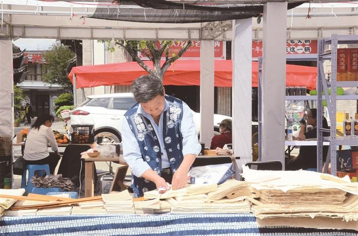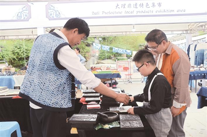 南國城(密灣)分會場非遺特色集市里甲馬傳承人耐心指導(dǎo)小朋友制作甲馬。