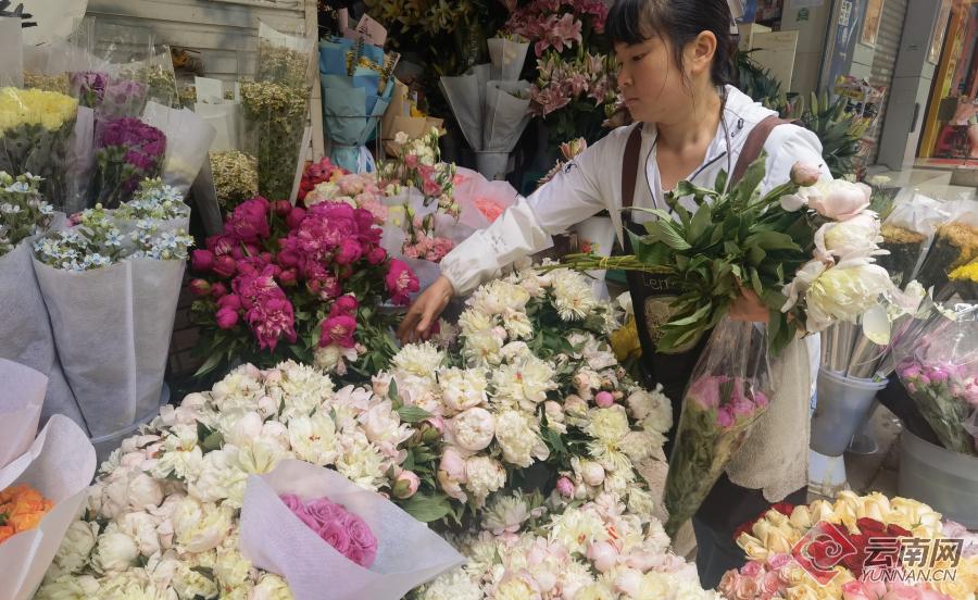 在昆明街頭花店,康乃馨,郁金香、玫瑰花、芍藥、百合、等鮮花成為母親節(jié)熱銷(xiāo)花品,商家趕制花束和配送服務(wù)格外紅火,寓意關(guān)愛(ài)和感恩等美好祝福的訂制花束擺滿(mǎn)花店。(云南網(wǎng) 記者楊崢)
