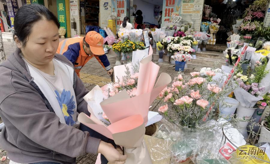 5月14日母親節(jié),鮮花成為春城市民獻(xiàn)給母親的節(jié)日首選禮物。