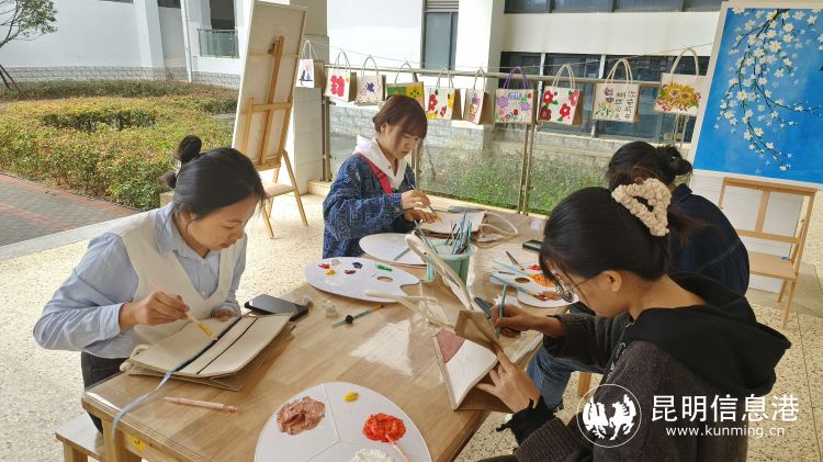 學(xué)前教育專業(yè)學(xué)生現(xiàn)場(chǎng)手繪創(chuàng)作團(tuán)扇和小背包