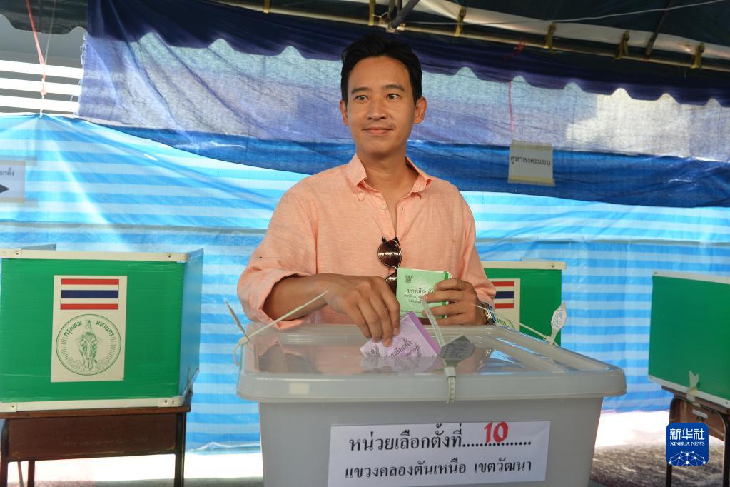 5月14日,泰國遠(yuǎn)進(jìn)黨總理候選人皮塔在曼谷一處投票站投票。新華社發(fā)(拉亨 攝)