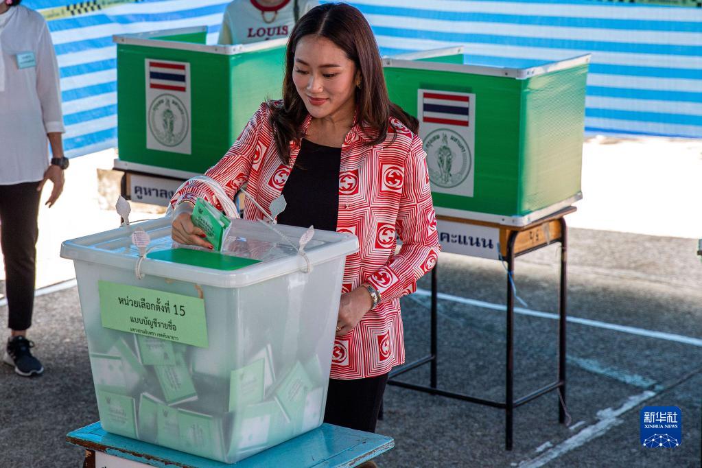 5月14日,泰國為泰黨總理候選人貝東丹在曼谷一處投票站投票。新華社記者 王騰 攝